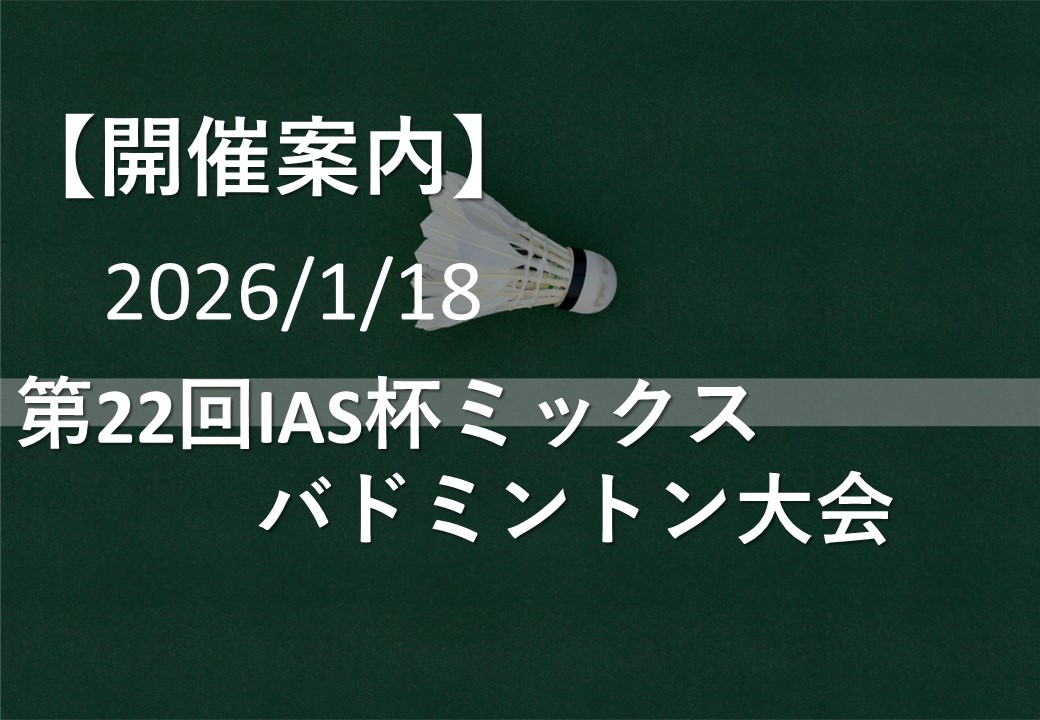 第22回IAS杯ミックスバドミントン大会開催案内 2025 12/10 お知らせ 開催要綱 2025年12月10日 令和8年1月18日に伊東市民体育センターにて開催いたします。 要項は以下のとおりです。 第22回IAS杯ミックス要項ダウンロード 参加申込書ダウンロード お知らせ 開催要綱 よかったらシェアしてね! URLをコピーしました! 第47回 諏訪市・伊東市姉妹都市バドミントン交流会が開催されました。 関連記事 令和7年度 伊東市スポーツ祭協賛バドミントン大会開催のお知らせ 2025年9月5日 第17回 伊東市シニアバドミントンフェスティバル開催のお知らせ 2025年8月30日 令和7年度 伊東市スポーツ祭小学生バドミントン大会開催のお知らせ 2025年8月24日 令和7年度 伊東市按針祭バドミントン大会開催のお知らせ 2025年7月16日 令和7年度 伊東市按針祭小学生バドミントン大会開催のお知らせ 2025年5月10日 第22回IAS杯バドミントン大会開催案内 2025年4月14日 第50回 伊東市総合選手権大会開催のお知らせ 2025年3月1日 第22回IAS杯ミックスバドミントン大会開催案内 2024年11月27日
